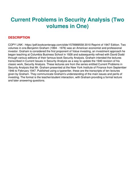 Download Current Problems in Security Analysis (Two volumes in One) Nook BookBoon